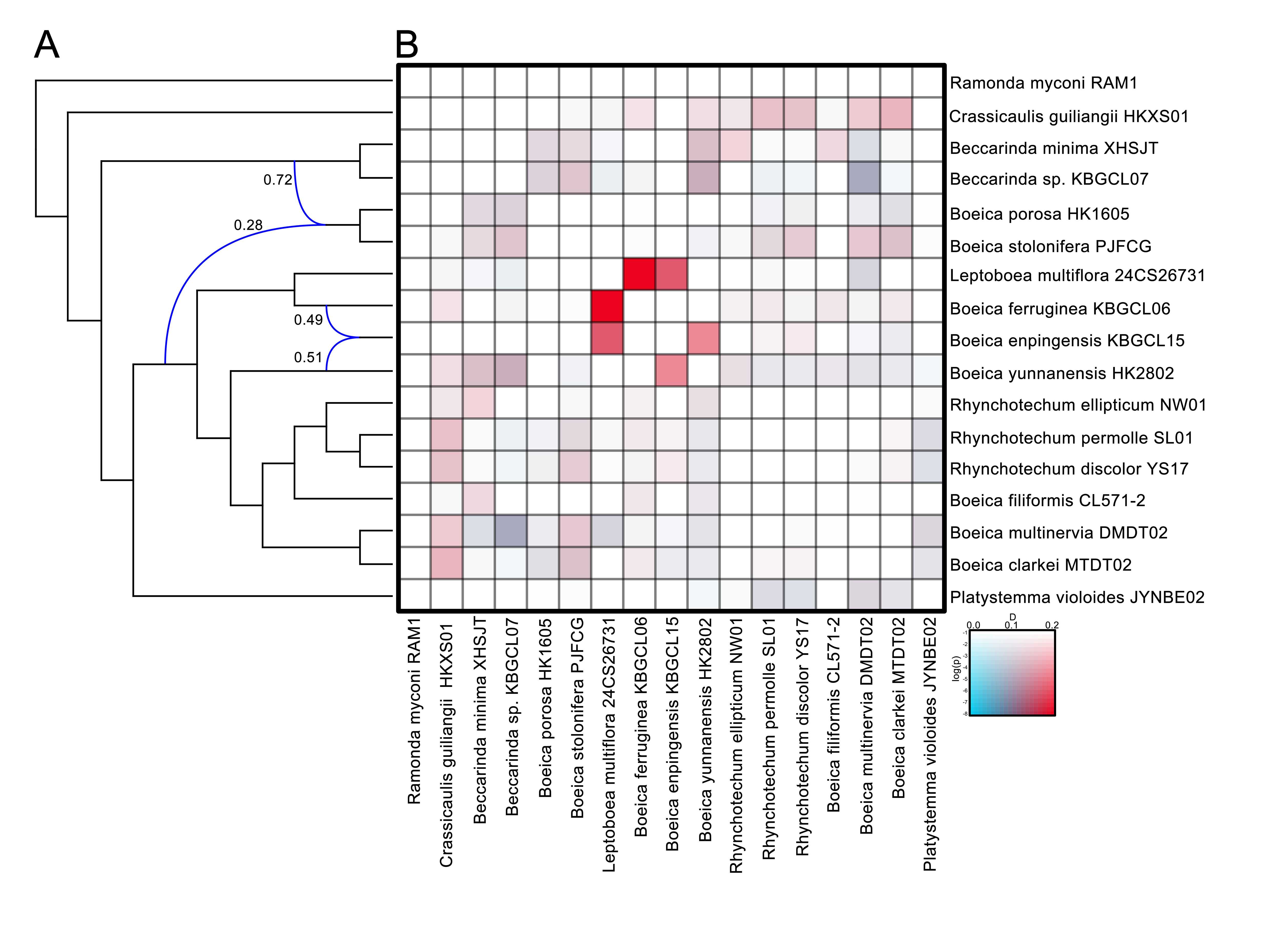 该研究以Phylogenomic reconstruction reveals deep reticulate evolutionary history and polyphyletic genus (Boeica) in the subtribe Leptoboeinae (Gesneriaceae),with description of a novel genus为题,在线发表于系统生物学经典期刊Cladistics。昆明植物研究所博士研究生杨丰懋与华南植物园博士后凌少军为共同第一作者,昆明植物研究所蔡磊副研究员、爱丁堡皇家植物园Michael Möller博士及海南大学任明讯教授为共同通讯作者,广西植物研究所温放研究员、西南林业大学王逸之副研究员、昆明植物所正高级工程师蔡杰、博士研究生杨入瑄、顾威、胡湘洲、林烈文等参与了研究。该研究得到中国科学院战略生物资源计划(CAS-TAX-24-059)、第二次青藏高原综合科学考察研究(2019QZKK0502)以及国家自然科学基金(41871041)等项目的支持。