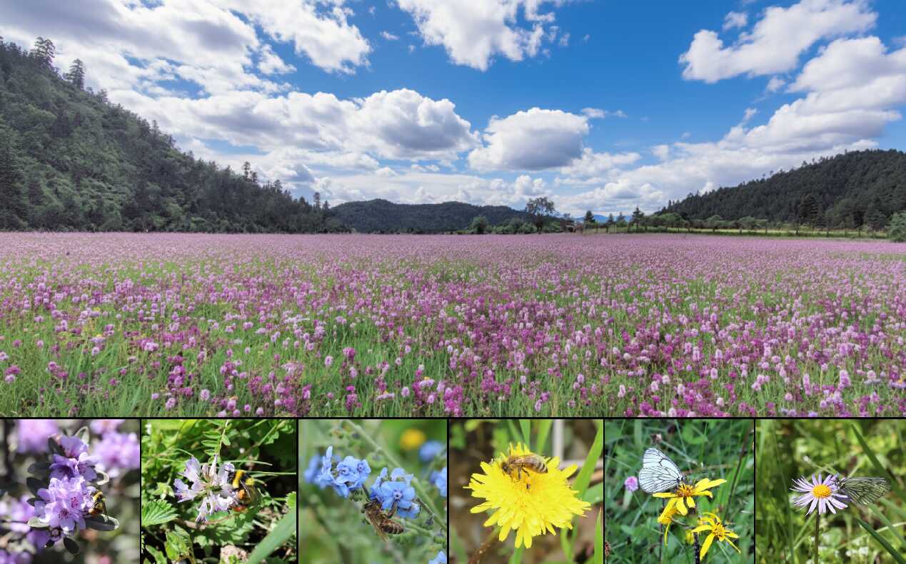 中国横断山脉地区是全球公认的生物多样性热点地区之一。在这里的高山草甸群落中,一季开花的植物可超过100种,传粉昆虫也多达数百种,物种丰富程度令人惊叹(图1)。面对如此繁盛的生态景观,一个有趣的问题浮现出来:这些植物是如何共享传粉者资源,从而实现稳定共存的?