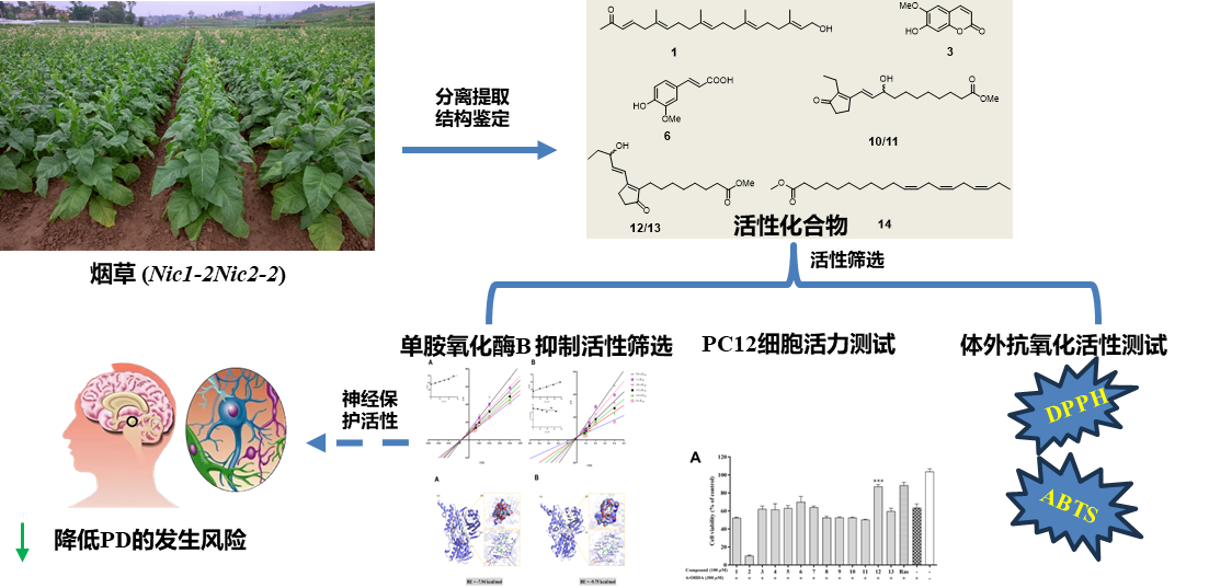 此前在多项流行病学研究中发现烟草中可能含有具有神经保护的活性物质,烟草中尼古丁成分的临床试验研究未显见抗PD效应,这些研究为烟草中非尼古丁成分的生物功能研究带来启发。