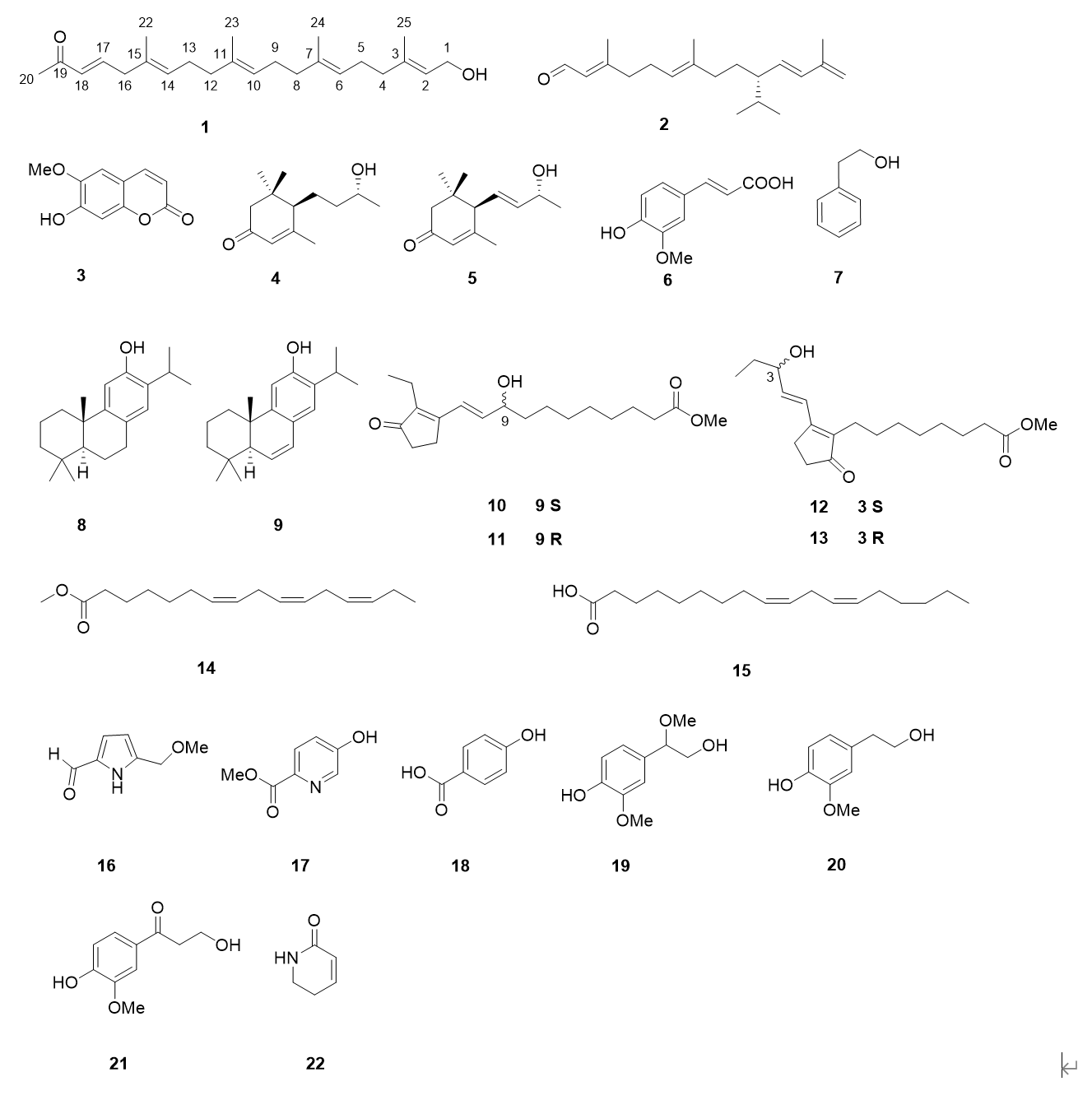 图2 从超低烟碱烟草中分离得到的化合物1-22