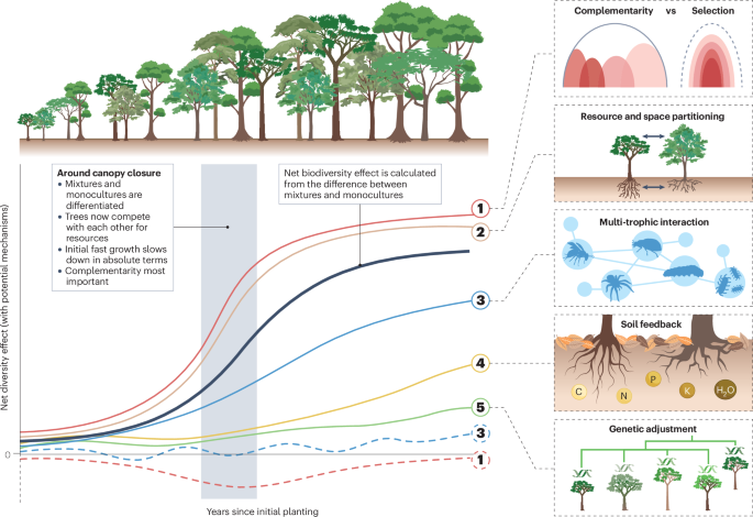 森林生物多样性–生态系统功能关系随时间变化的潜在机制
