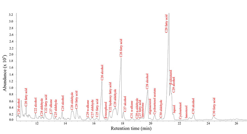 南五味子的角质层蜡质主要由脂肪酸、长链伯醇、醛类、甾醇等成分构成,这些成分的比例和结构会随生境条件动态调整,形成专属 “适应策略”: