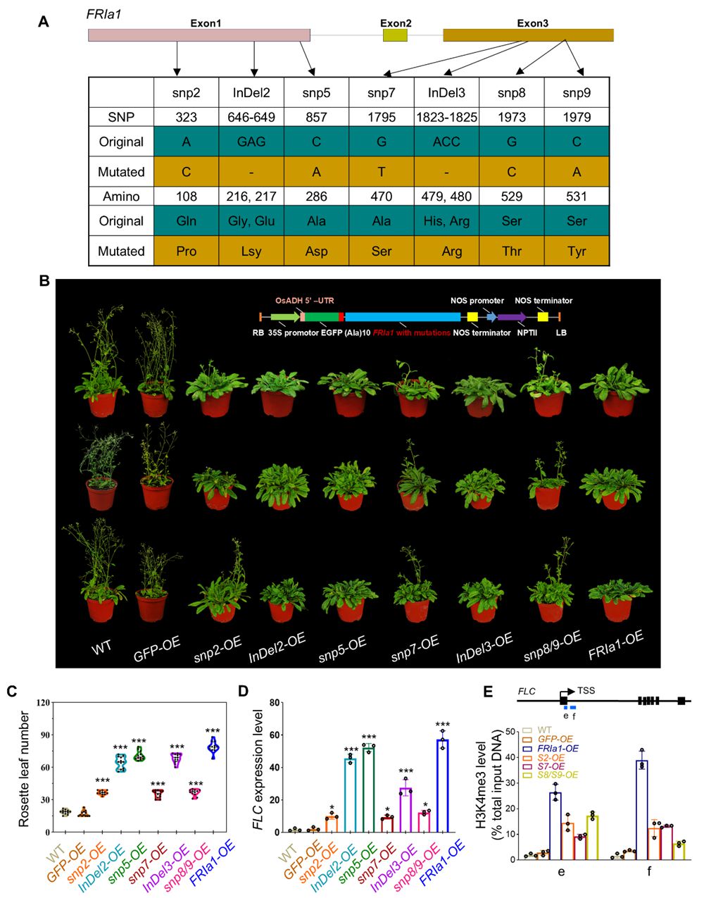 图2 FRIa 等位基因变异在开花调控中的功能验证。