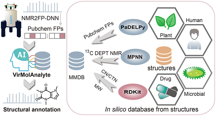 核磁共振(NMR)是天然产物结构鉴定中最重要的分析工具之一。然而,NMR 谱图的结构注释通常高度依赖成本高昂的实验数据。尽管近年来基于量子化学计算或者人工智能算法生成的虚拟NMR数据在一定程度上扩展了数据库规模,但基于虚拟数据库的结构注释准确率仍然有限。为解决这一问题,研究团队近期提出了一种新的工具 VirMolAnalyte(https://www.virmolanalyte.top/),可在无实验数据依赖下,实现对 ¹³C DEPT NMR 谱图的高质量结构注释。