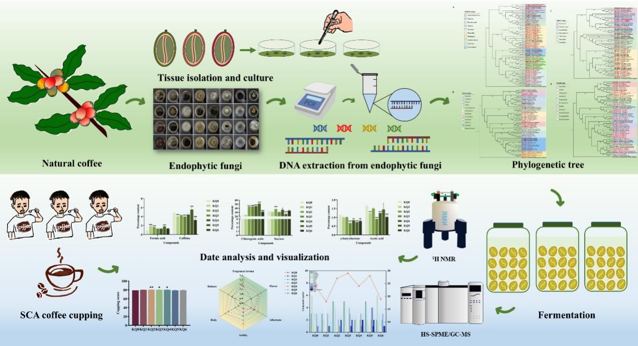 咖啡的风味源自复杂的化学成分。随着全球市场转向以独特感官特征为价值的特色产品,对风味精准调控的需求愈发强烈。云南作为中国最重要的阿拉比卡咖啡产区,近年来已从“廉价原料”蜕变为精品咖啡新势力。在此背景下,咖啡风味一致性成为可持续发展的关键技术难题。长期以来,咖啡风味一直强调已确立的影响因素,包括咖啡品种、地理来源以及采后处理和烘焙技术的变化。近年来,微生物发酵作为改善咖啡风味提升品质的关键技术之一得到了广泛的认可。