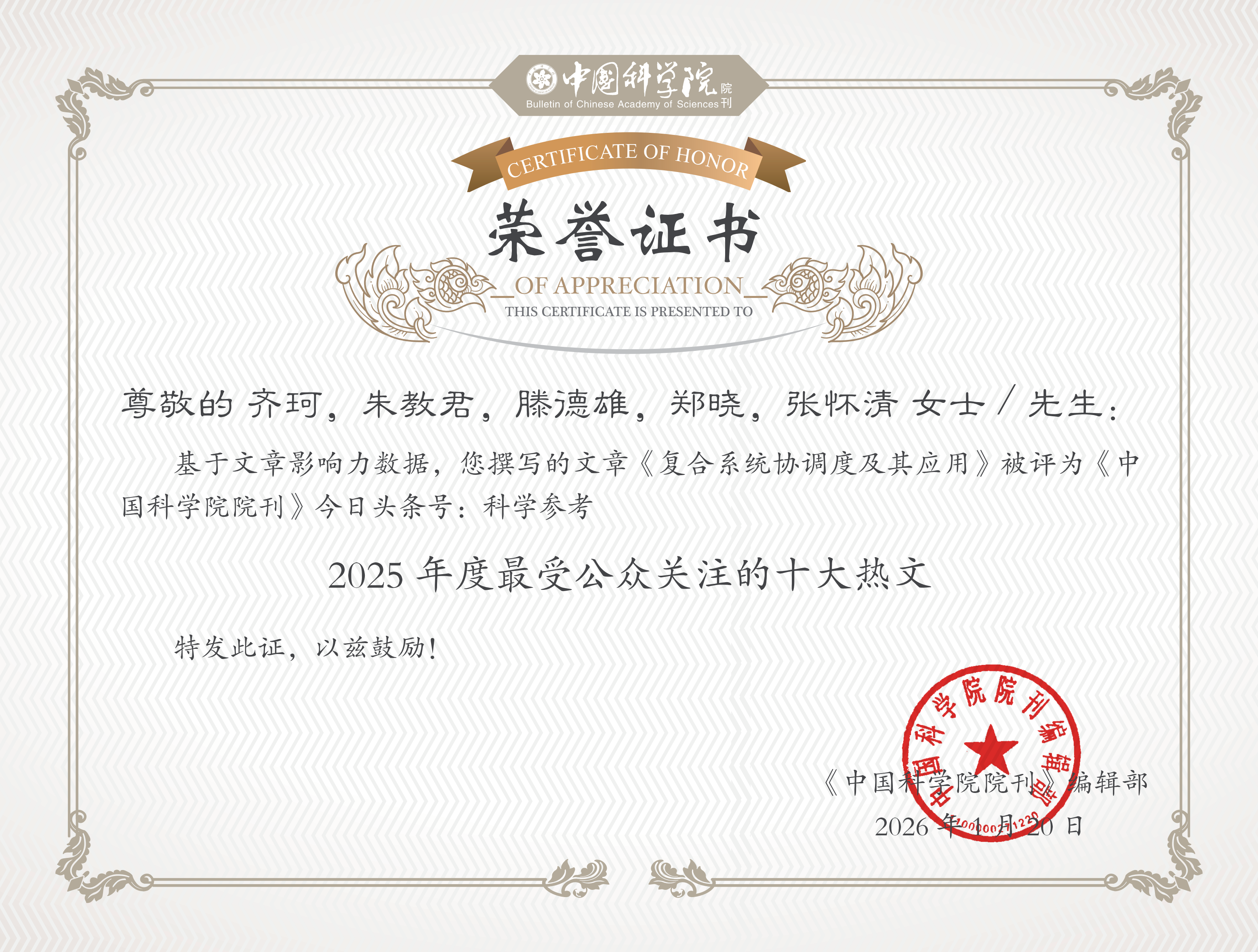 《中国科学院院刊》“2025年度最受公众关注的十大热文”链接: