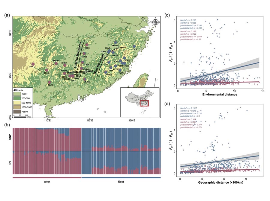 银钟花的种群分布和遗传结构图