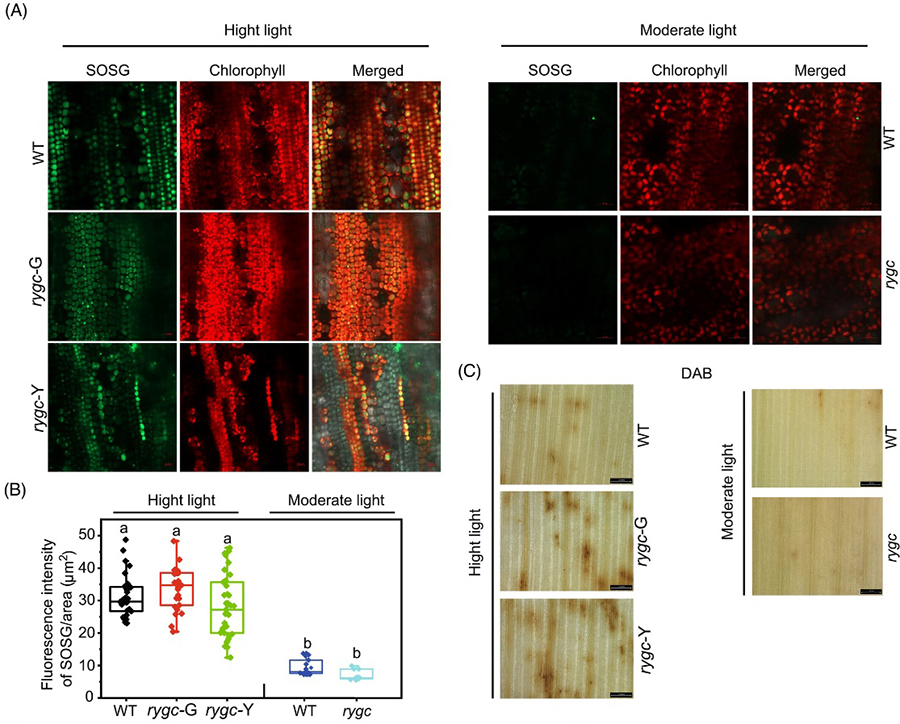 不同光照条件下突变体里活性氧的积累