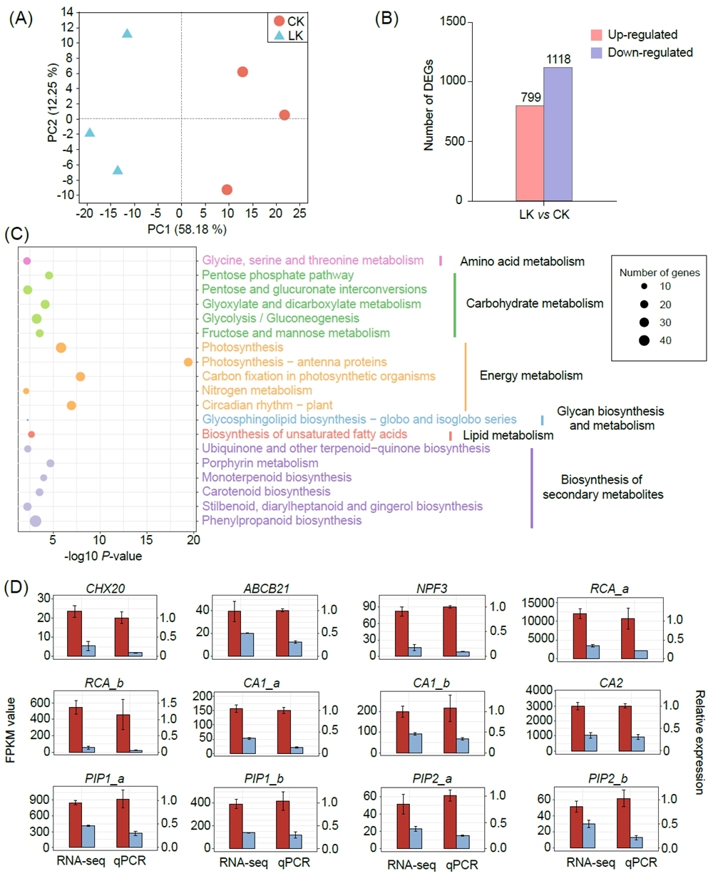 图2研究中番茄对照组和缺钾叶片的转录组比较分析结果。