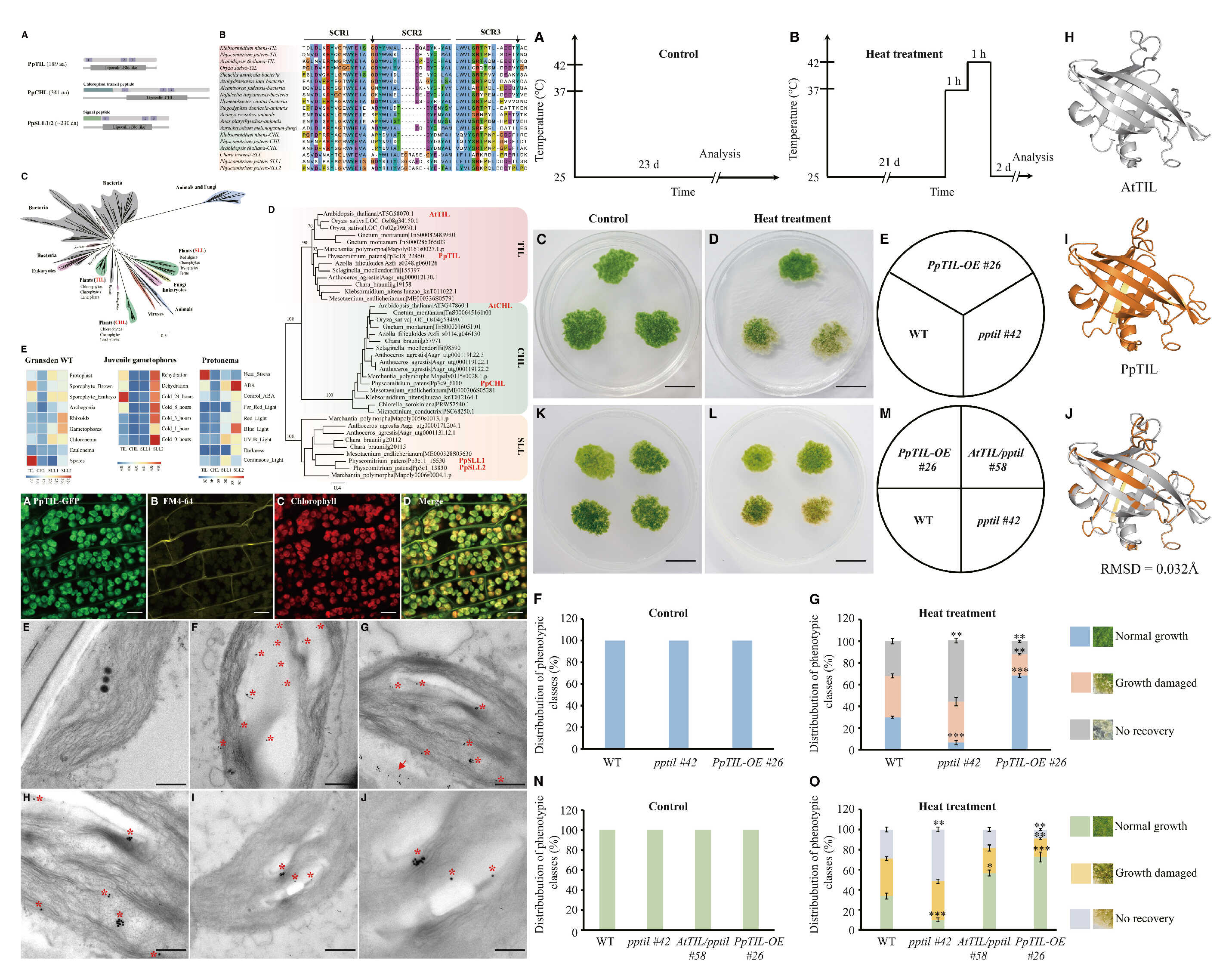 图1TIL的系统发育分析和PpTIL的亚细胞定位及在非生物胁迫中的作用