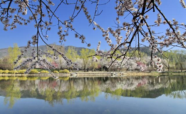 ↑3月22日,游人在北京植物园赏春景。连日来,北京植物园春花竞相绽放,春意盎然。 新华社发(刘宪国 摄)