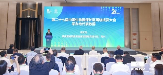 在第二十六届中国生物圈保护区网络年会的闭幕式上,会议宣布鼎湖山世界生物圈保护区成为2026年第二十七届中国生物圈保护区网络成员大会举办地。肇庆星湖风景名胜区管理局局长胡文龙作为举办地代表出席并致辞。2026年是鼎湖山保护区成立70周年,鼎湖山保护区始终坚持严苛守护与科学管理并重,森林植被持续优化,物种记录不断丰富,已成为粤港澳大湾区重要的生物多样性宝库和生态安全屏障。