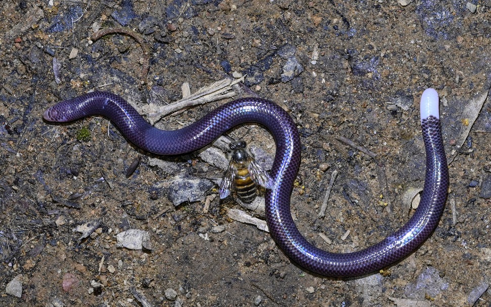 白尾双足蜥与蜜蜂对比照(卞文博 摄)