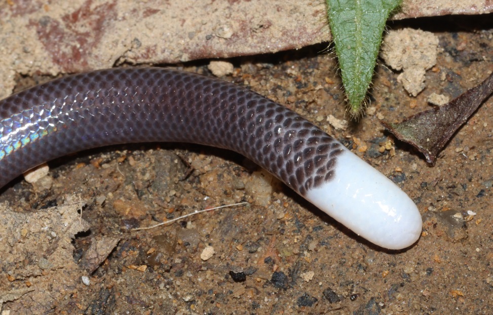 白尾双足蜥是爬行纲有鳞目双足蜥科双足蜥属动物,外形极具辨识度:体形似蚯蚓和盲蛇,成体体长约12至18厘米,躯体纤细圆润,四肢高度退化,仅雄性留存一对短小瓣状后肢,雌性完全无四肢;躯体覆盖光滑的覆瓦状圆鳞,体色以浅褐、紫褐或暗灰色为主,头部短小,眼睛退化并隐匿于鳞片之下,尾部末端纯白色是其最醒目的识别特征。